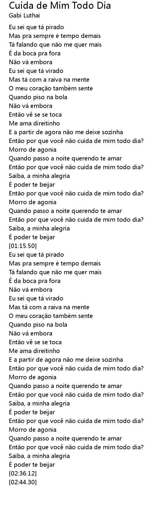 | [01:57.77] | Ent o por que voc n o cuida de mim todo dia? |