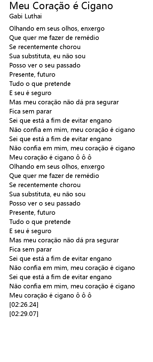 | [02:12.72] | Meu cora o é cigano |
