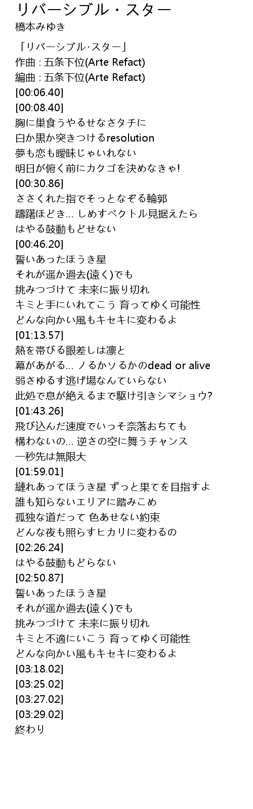 | [00:03.40] | 作曲∶五条下位(Arte Refact) |