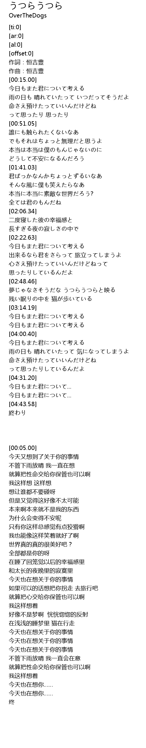 | [01:43.25] | 君ばっかなんかちょっとずるいなあ |
