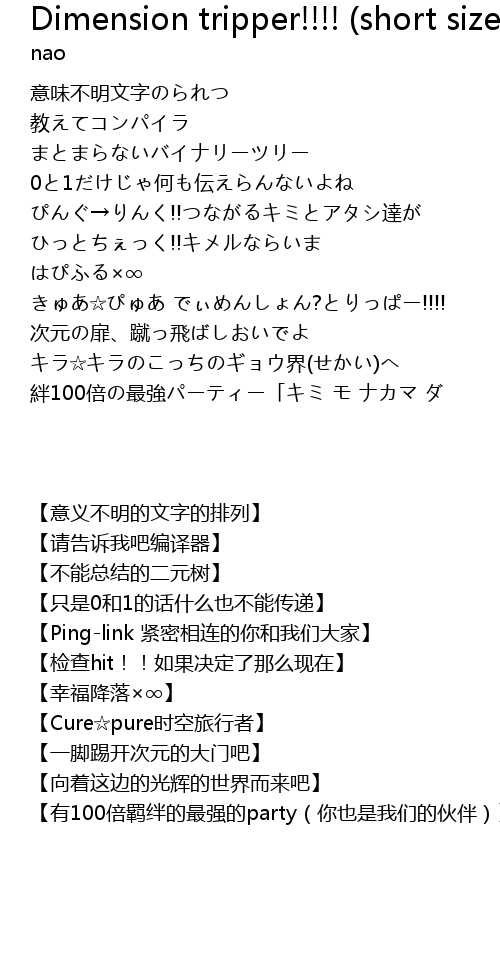 | [00:56.92] | きゅあ☆ぴゅあ でぃめんしょん?とりっぱー!!!! |