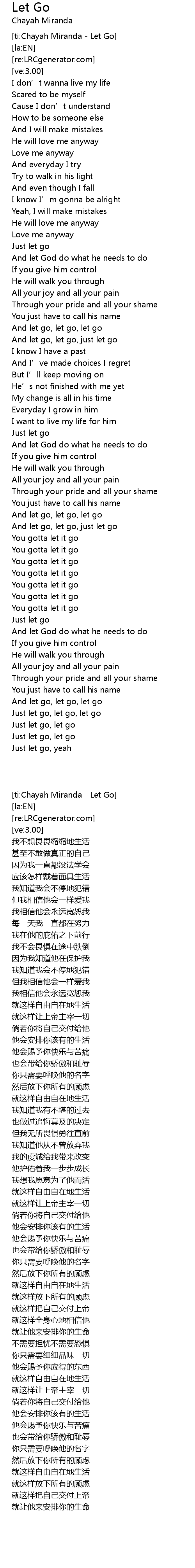 | [ti:Chayah Miranda - Let Go] | |