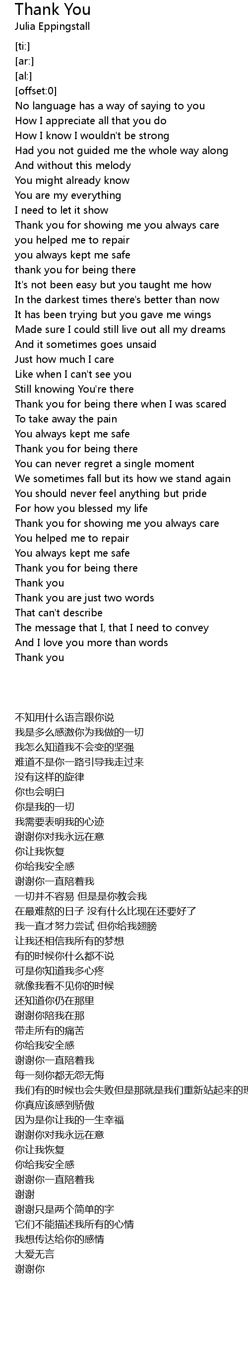 Thank you for being there when I was scared |