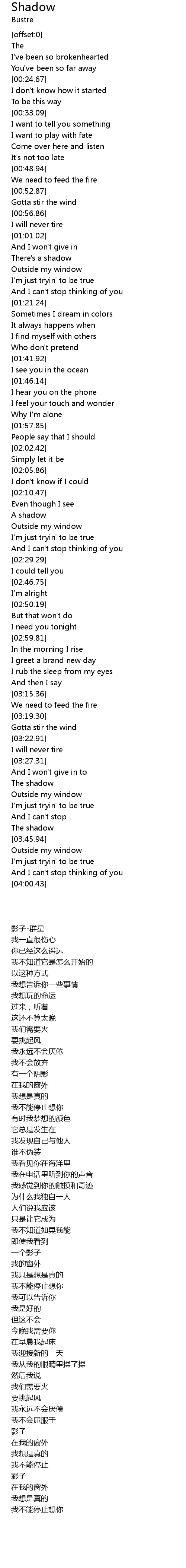 [00:00.85] The shadow qún xīng