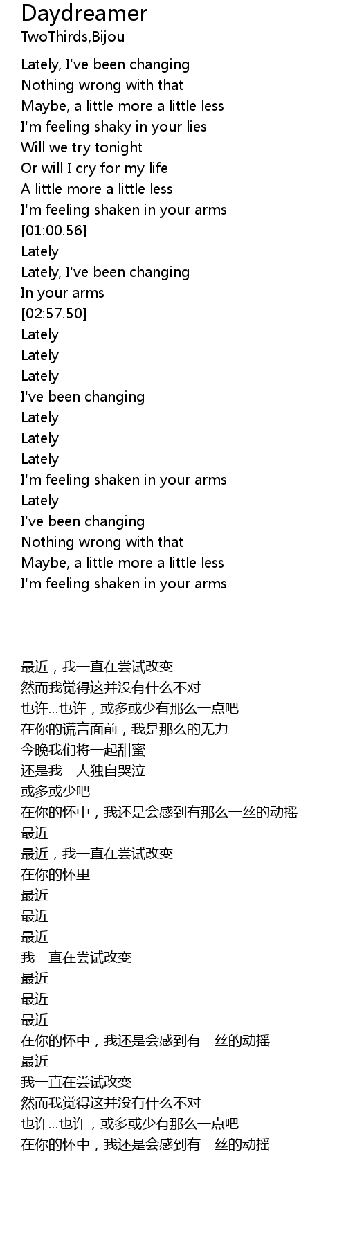 | [02:59.74] | Lately |