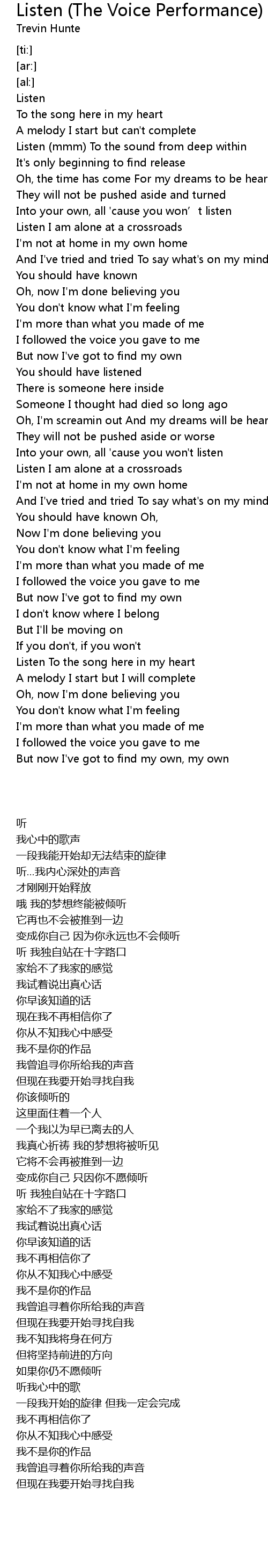 | [00:16.16] | Listen (mmm) To the sound from deep within |
