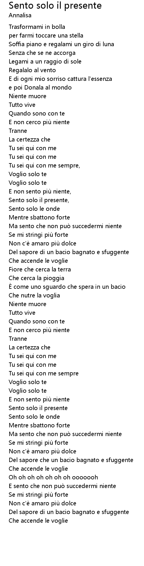 | Song | Sento solo il presente |