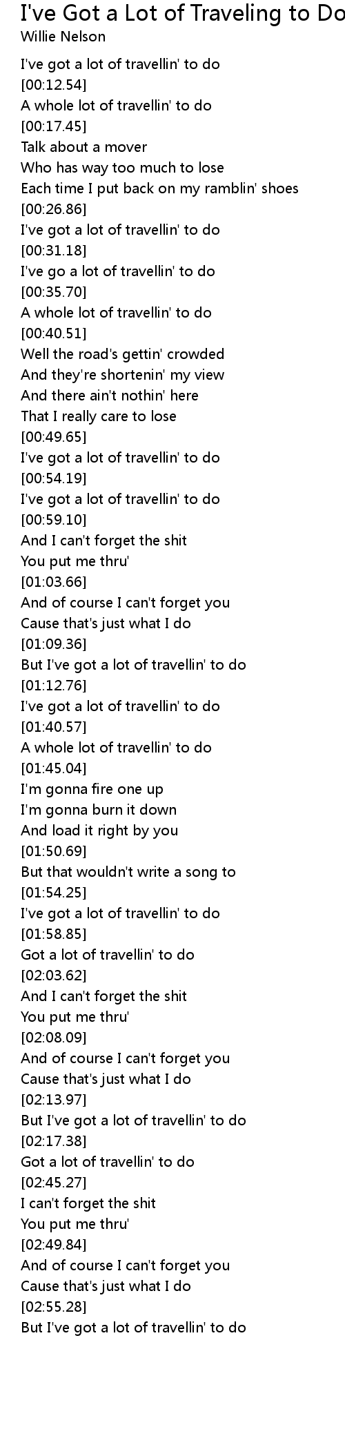 [01:42.37] A whole lot of travellin' to do