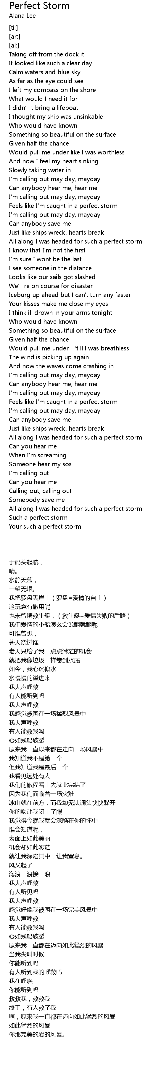 | [01:23.54] | Feels like I' m caught in a perfect storm |