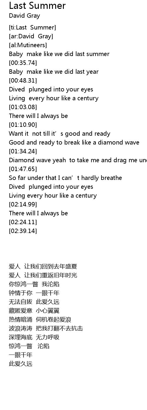 | [01:36.86] | Diamond wave yeah to take me and drag me under |