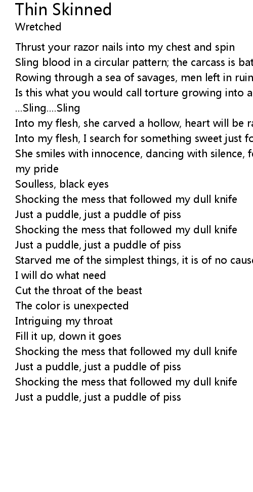 | Into my flesh, she carved a hollow, heart will be raw | |