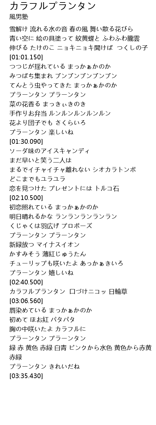 | [02:54.210] | カラフルプランタン 口づけニコッ 日輪草 |
