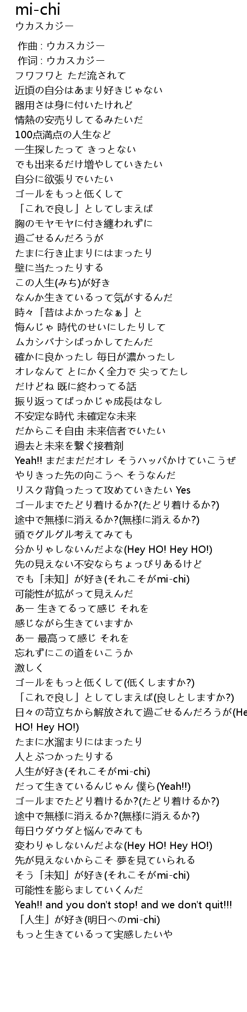 | [02:42.52] | でも「未知」が好き(それこそがmi-chi) |