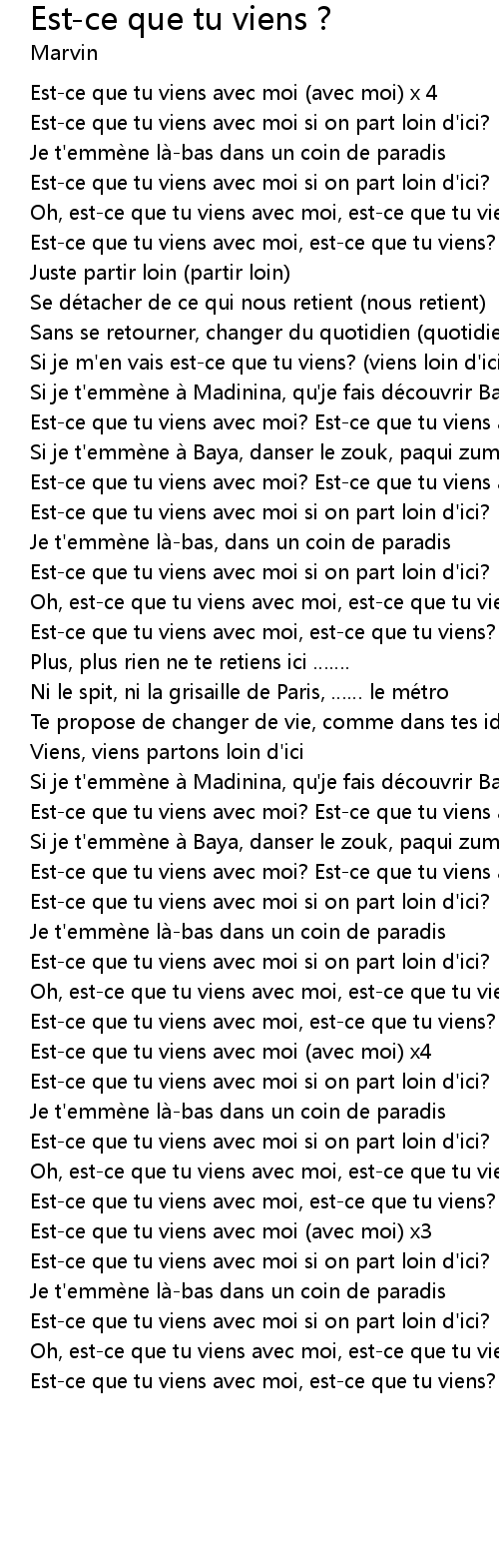 | Est-ce que tu viens avec moi (avec moi) x3 | |