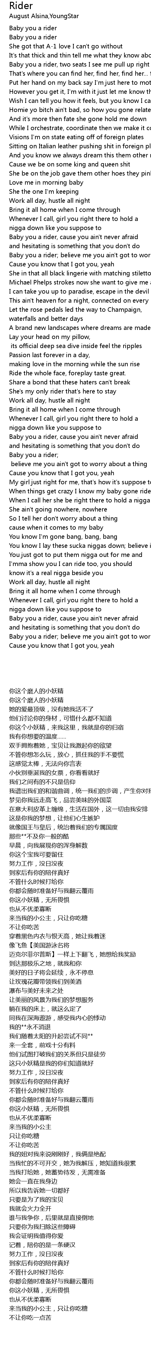 | [01:31.06] | Baby you a rider; believe me you ain't got to worry about a thing |