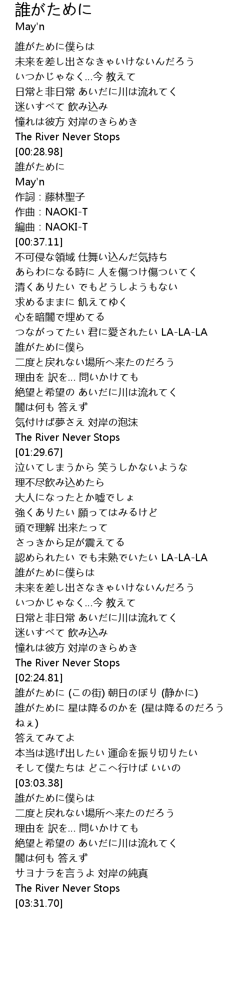 | [02:38.21] | 誰がために 星は降るのかを (星は降るのだろう ねぇ) |