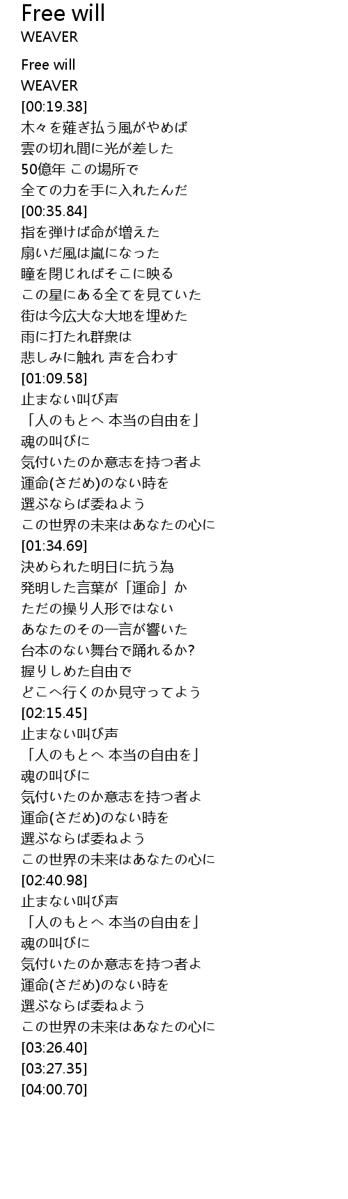 | [00:00.00] | Free will |