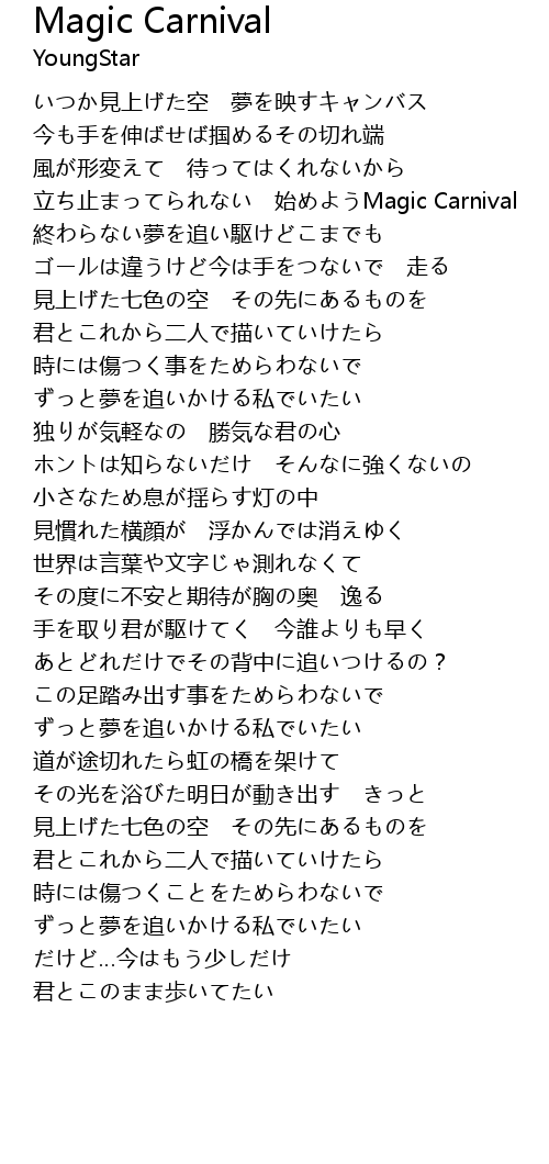 | [00:49.62] | lì zhǐ shǐ Magic Carnival |