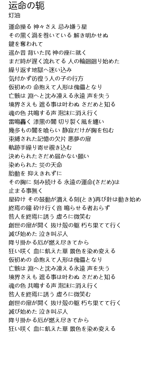 | [01:35.11] | 染められた 災の天命 |