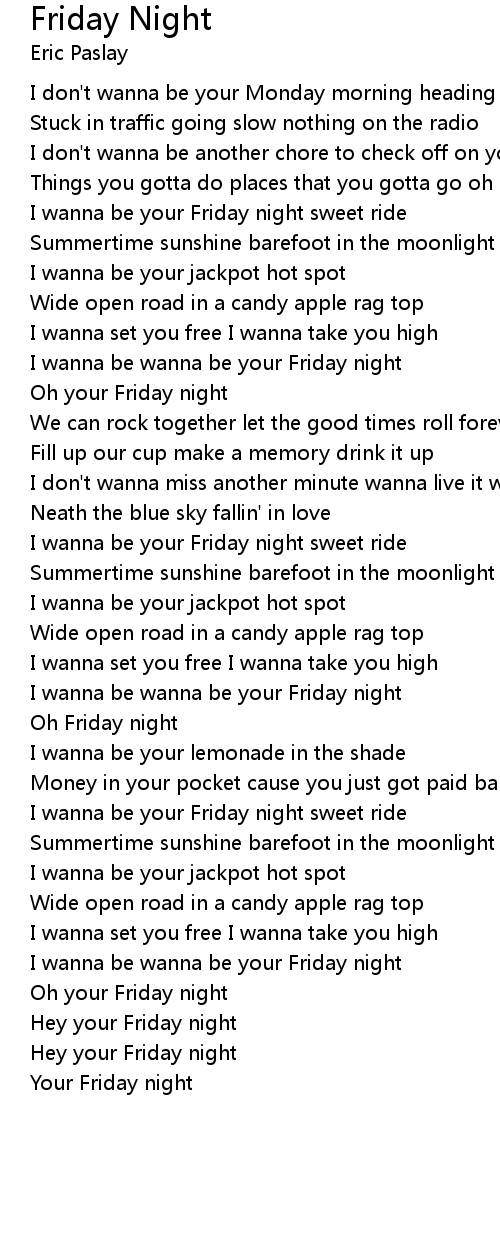 I wanna be your Friday night sweet ride |