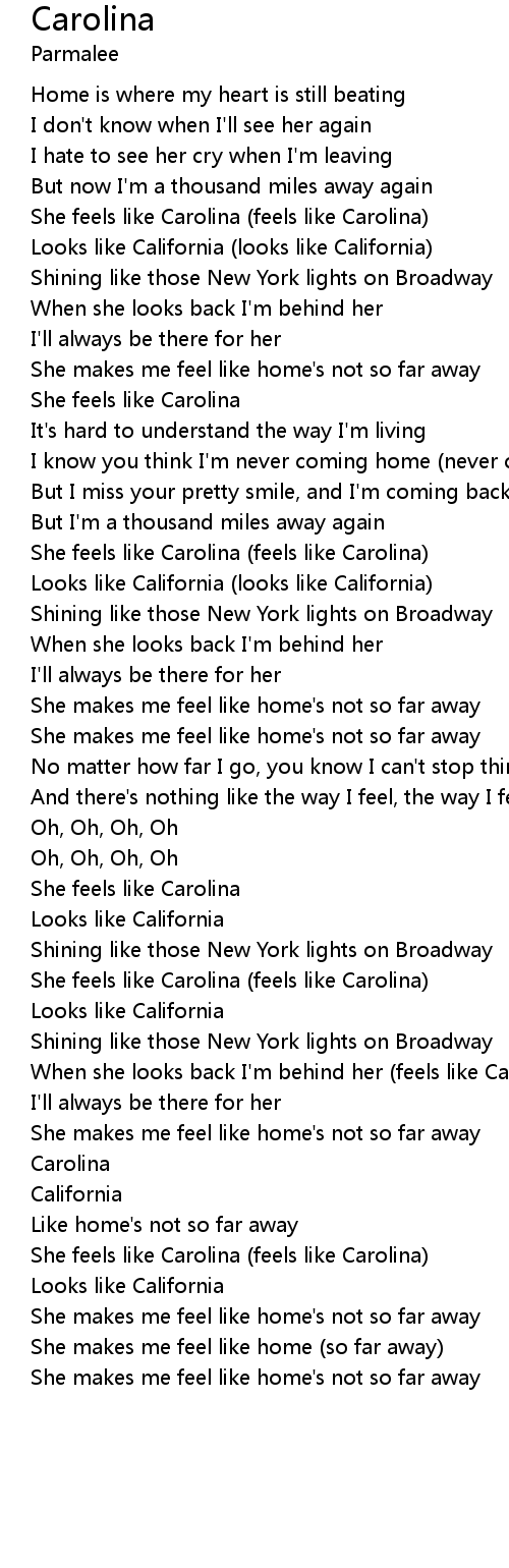She feels like Carolina (feels like Carolina) |
