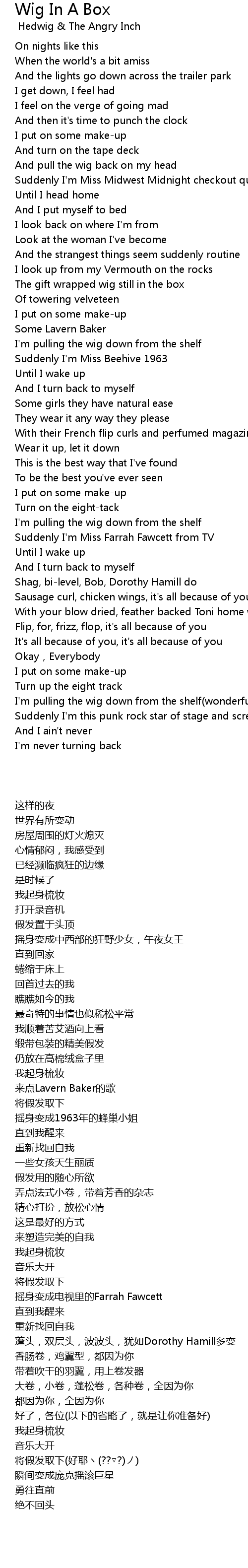 | [02:12.84] | I'm pulling the wig down from the shelf |
