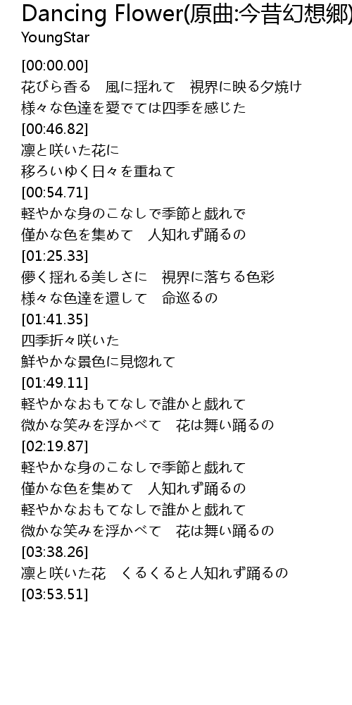 | [03:29.98] | 微かな笑みを浮かべて 花は舞い踊るの |