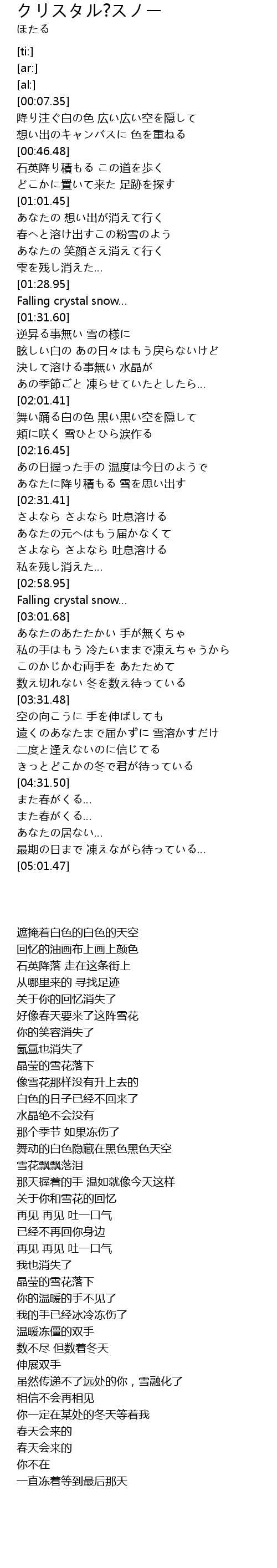 | [01:46.73] | 決して溶ける事無い 水晶が |