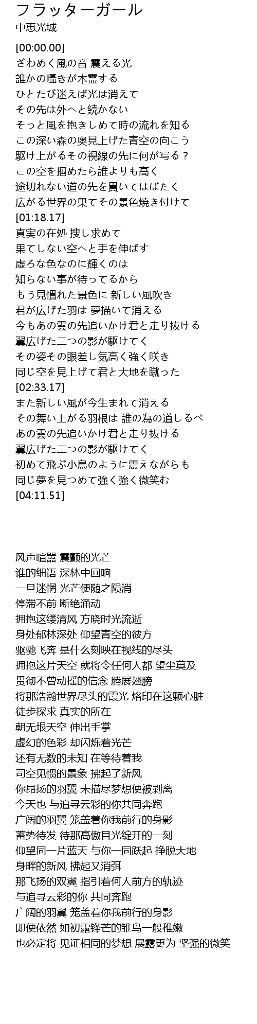 | [02:18.71] | その姿その眼差し気高く強く咲き |