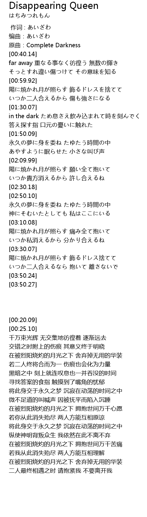 | [00:25.10] | 原曲:Complete Darkness |