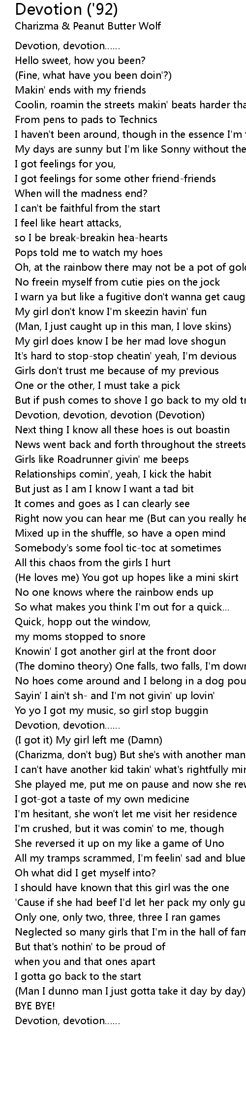 | [01:09.691] | Devotion, devotion, devotion (Devotion) |