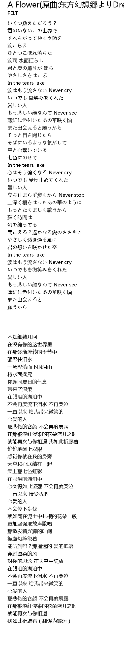 | [3:38.77] | lèi liú Never cry |