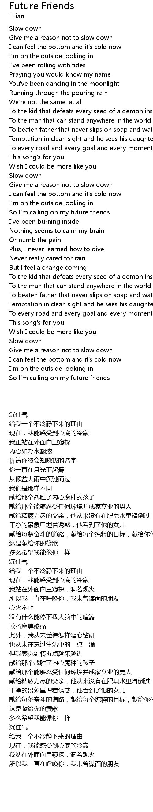 So I'm calling on my future friends |
