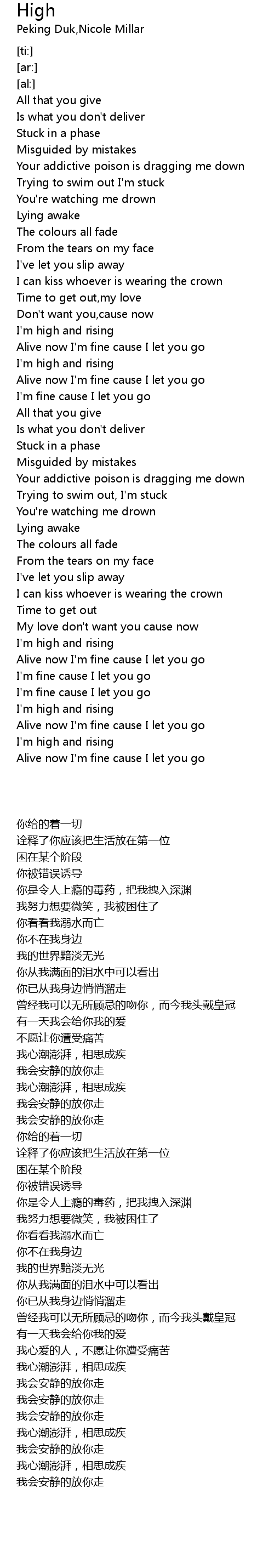 Alive now I'm fine cause I let you go |