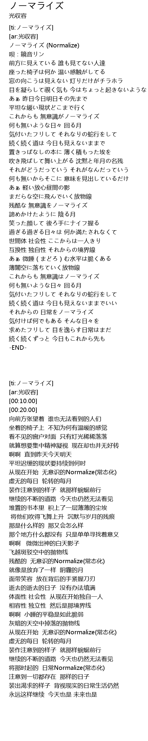 | [03:19.06] | これからも 無意識はノーマライズ |