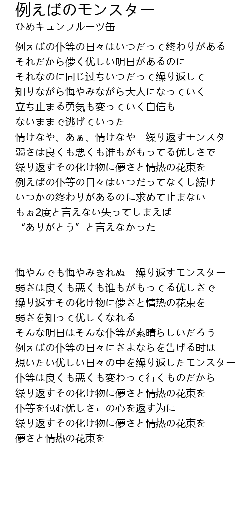 | 缲り返すその化け物に儚さと情热の花束を | |