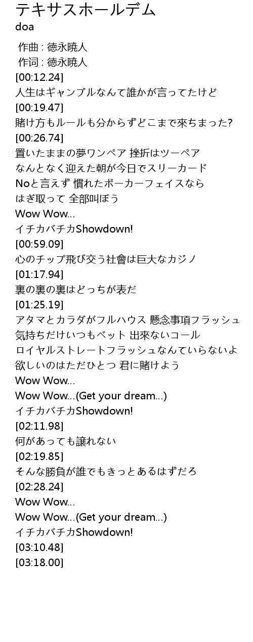| [01:35.56] | ロイヤルストレートフラッシュなんていらないよ |