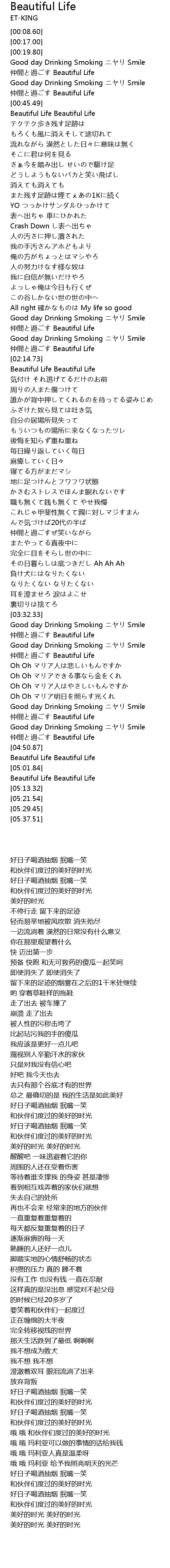 | [04:40.56] | Good day Drinking Smoking Smile |