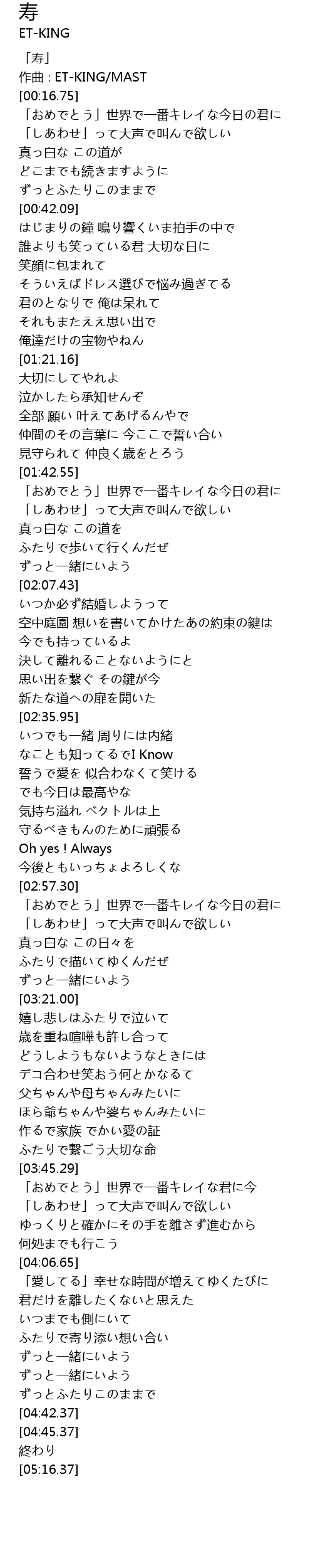| [01:43.28] | 「おめでとう」世界で一番キレイな今日の君に |
