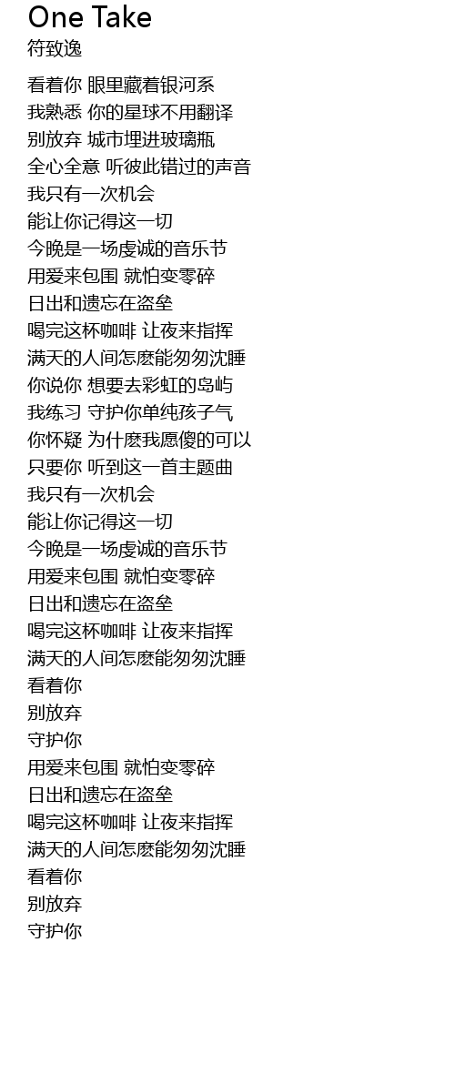 | [01:39.97] | 我练习 守护你单纯孩子气 |
