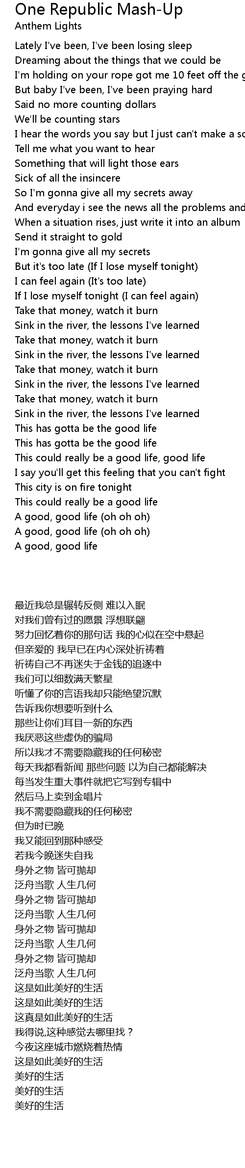 One Republic Mash-Up Lyrics