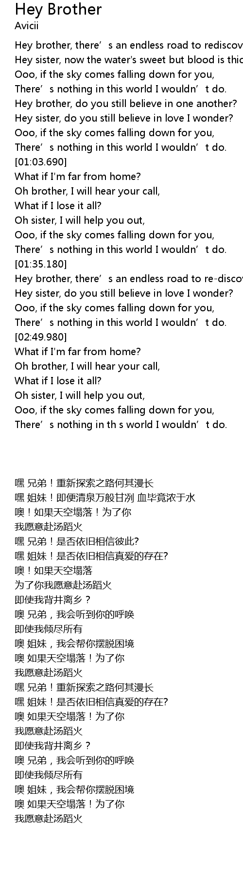 | [00:35.380] | Hey brother, do you still believe in one another? |