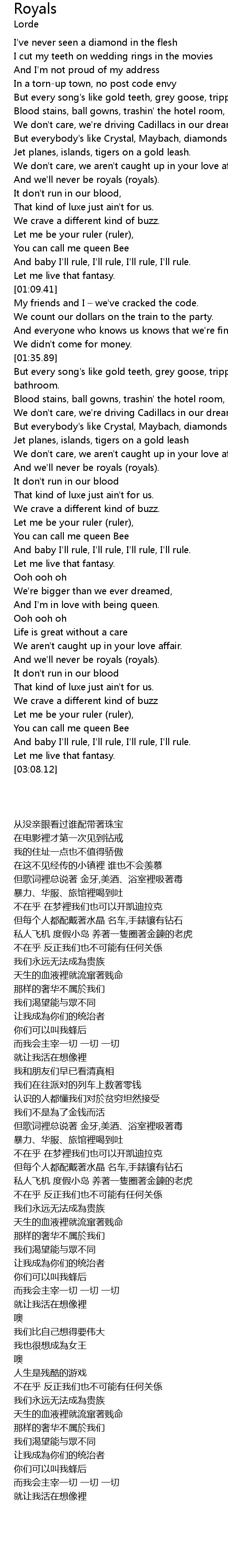 | [02:44.01] | And we'll never be royals (royals). |