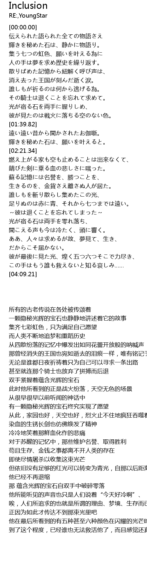 | [00:53.97] | 消え去った王国が刻んだ逝く涙。 |