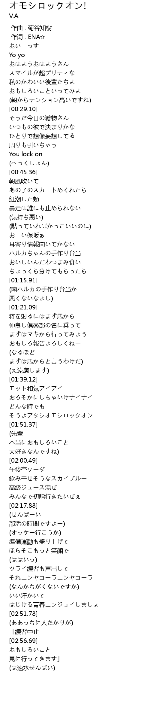 | [01:48.53] | そうよアタシオモシロックオン |
