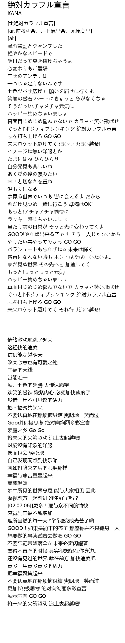 | [03:18.55] | ぐっと↑ポジティブシンキング 絶対カラフル宣言 |
