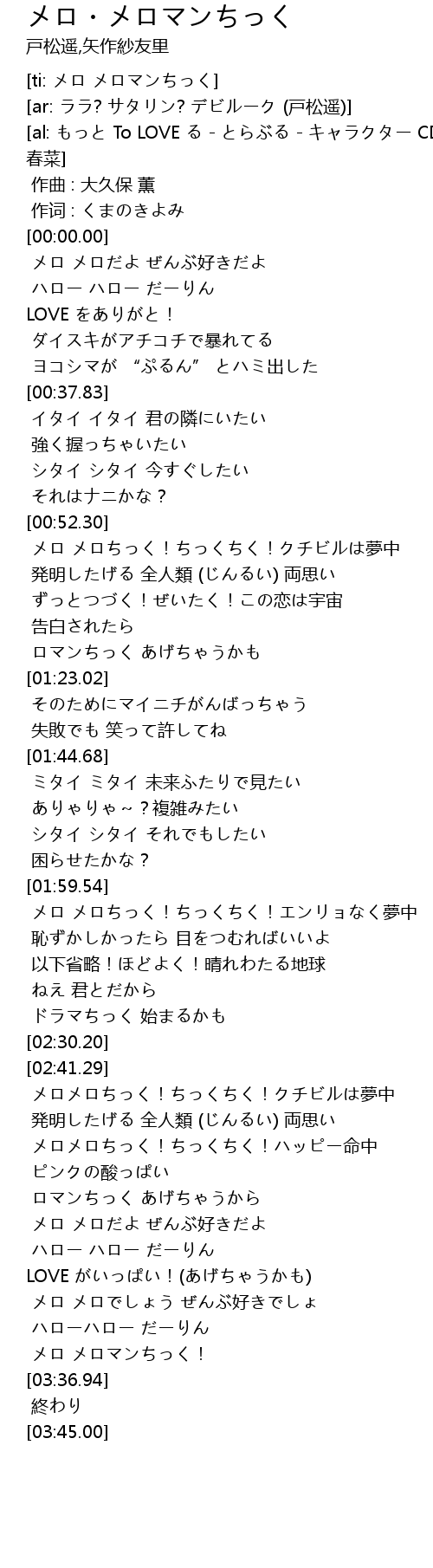 | [00:01.93] | メロ メロだよ ぜんぶ好きだよ |