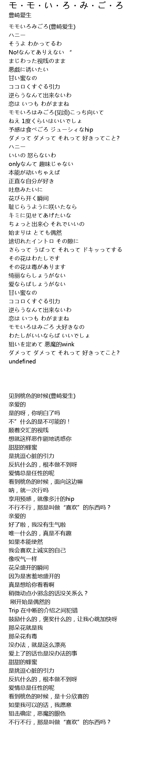 | [00:00.77] | モモいろみごろ(豊崎爱生) |