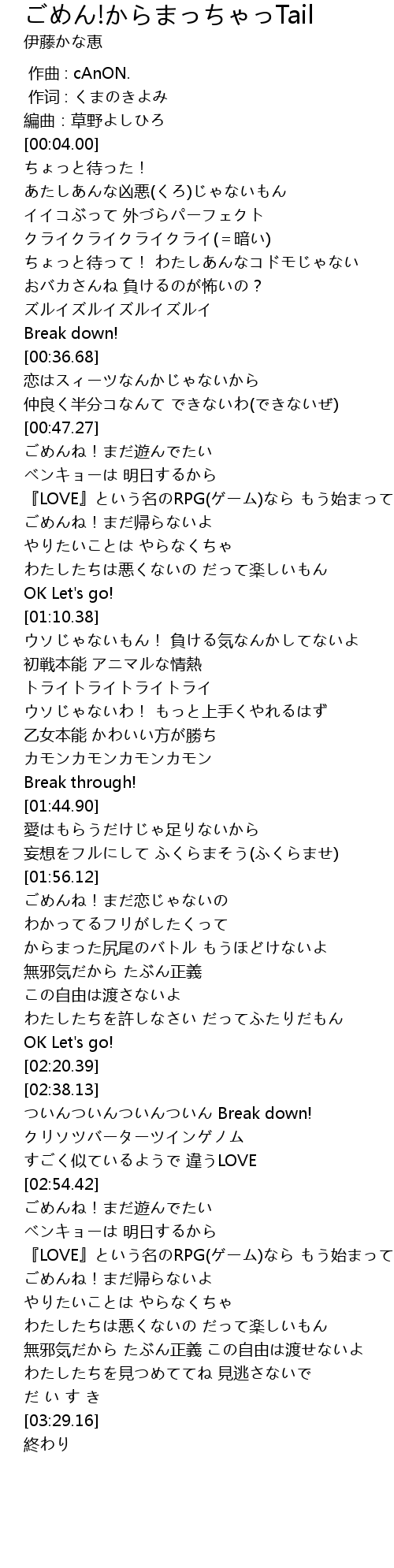 | [02:54.73] | ごめんね!まだ遊んでたい |