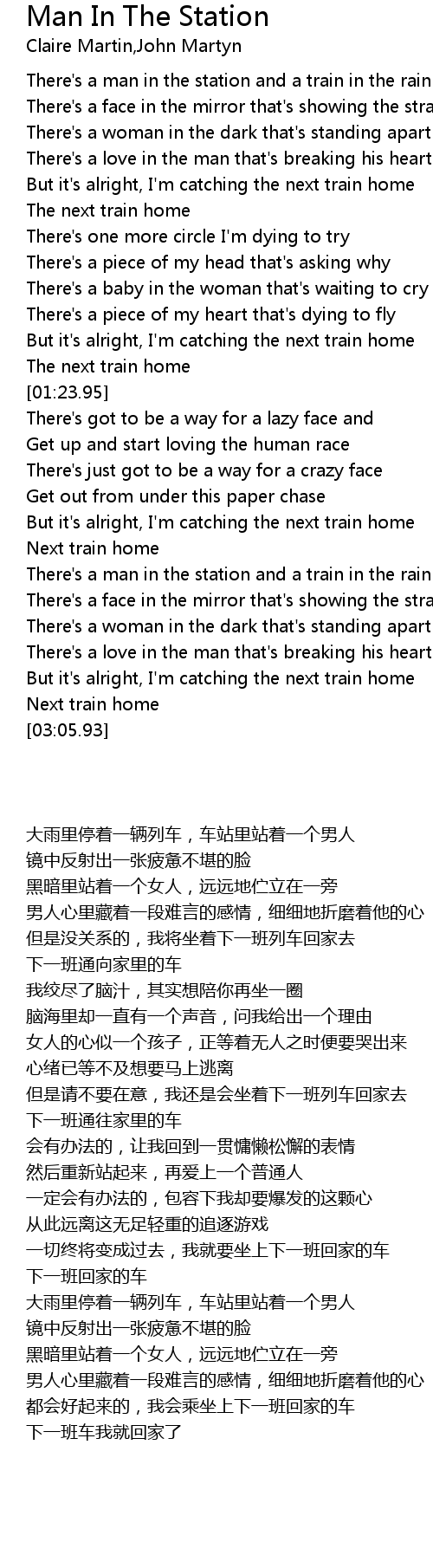 [00:17.45] There's a man in the station and a train in the rain